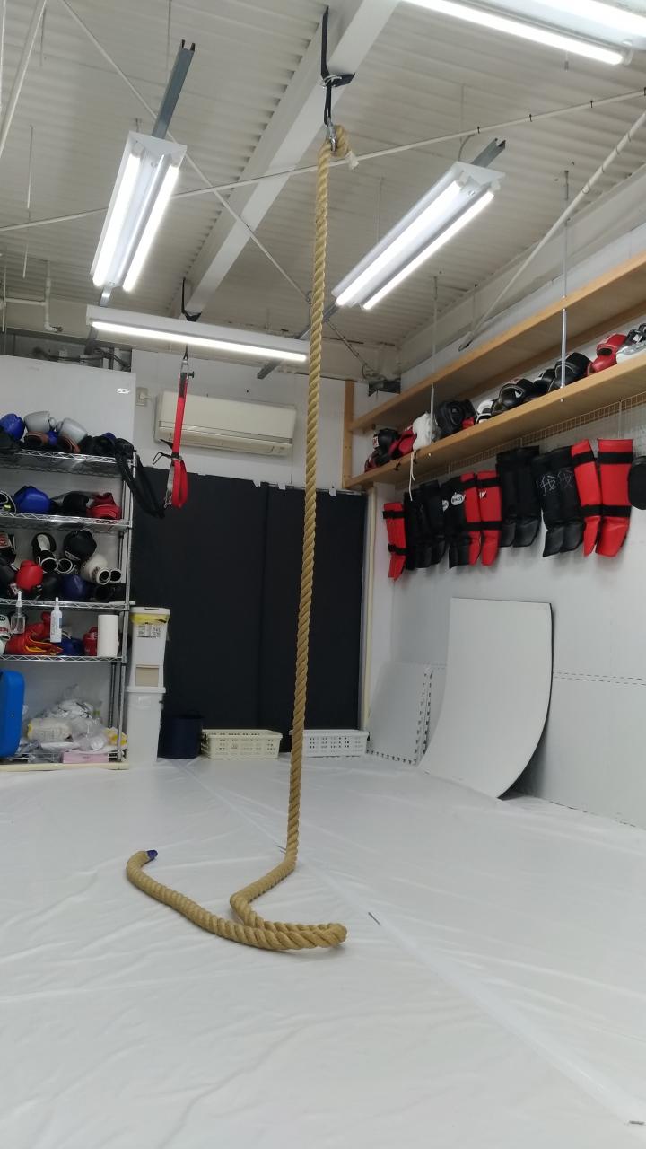以前にもロープを設置していましたがロープのトレーニングは ストライカーにもグラップラーにも上半身のトレーニングとしてとても有効です。