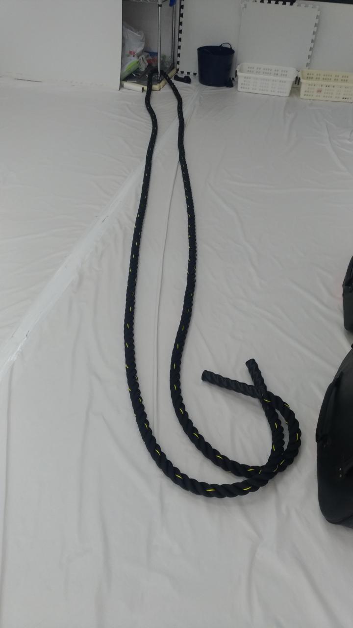 買っておいてどこに設置するか迷ってたバトルロープですがとりあえず2階に設置しました。