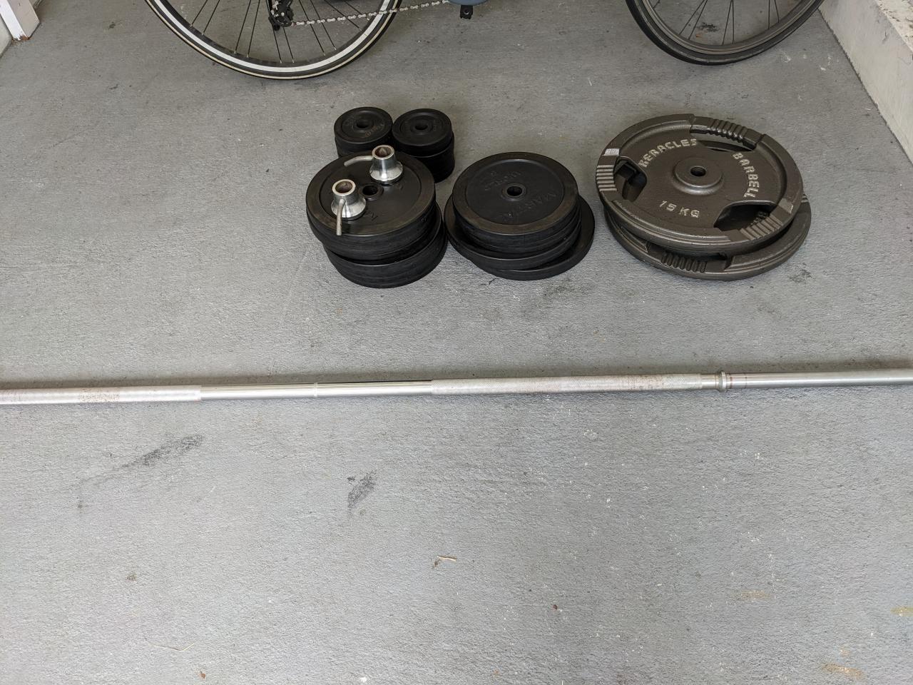 古くからの練習仲間からバーベルと100kg分のプレートを道場に寄贈してもらいました