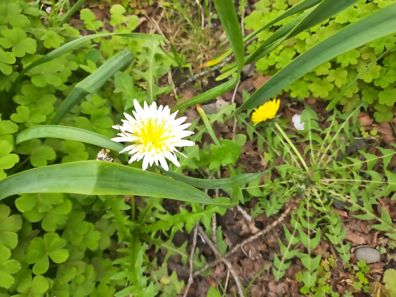 先日、白いタンポポを見かけました。京都ではレアですね。